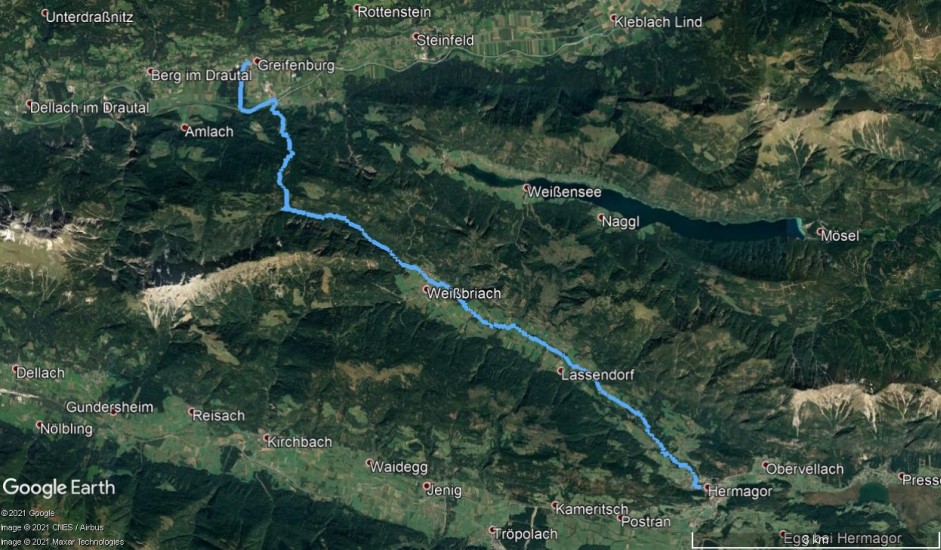Raus aus den Fünfzigern, einmal noch kurz durch das verschlafene Greifenburg und schon war ich wieder in der Natur - es ging runter zur Drau und an dieser noch ein Stück entlang. Ganz gemütlich zum warm werden. Nachdem der hier noch kleine Fluß überquert war ging es nämlich nochmal steil bergan. Heute zwar nicht lange, aber zum Schwitzen hat‘s gereicht :-D