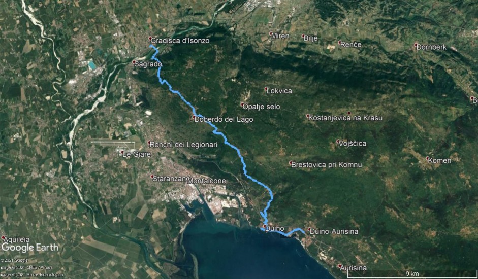 Dann war der „Gipfel“ für heute endlich erreicht. Das Meer vor mir ging es jetzt nur noch nach unten. Und schneller als gedacht war ich dann in Duino - ein großer Meilenstein der Tour war geschafft! Ich lief hinab zum Hafen und machte erstmal eine ausgiebige zweite Frühstückspause - genug war ja da ;-) Ich weiß gar nicht, was die dachten, wieviele ich bin…